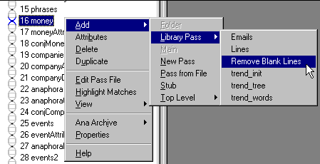 This window maintains the ordered sequence of passes that define the current text analyzer. System or built-in pass